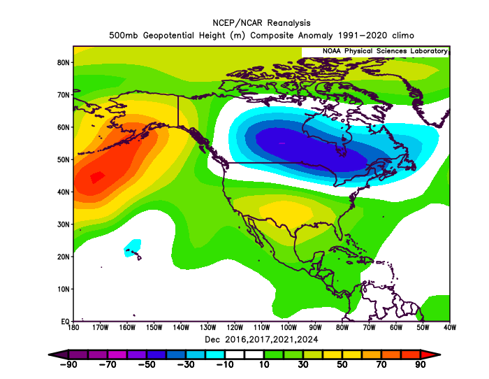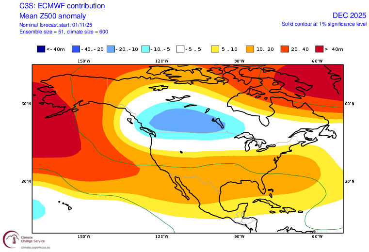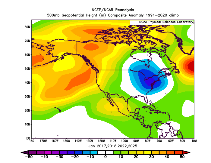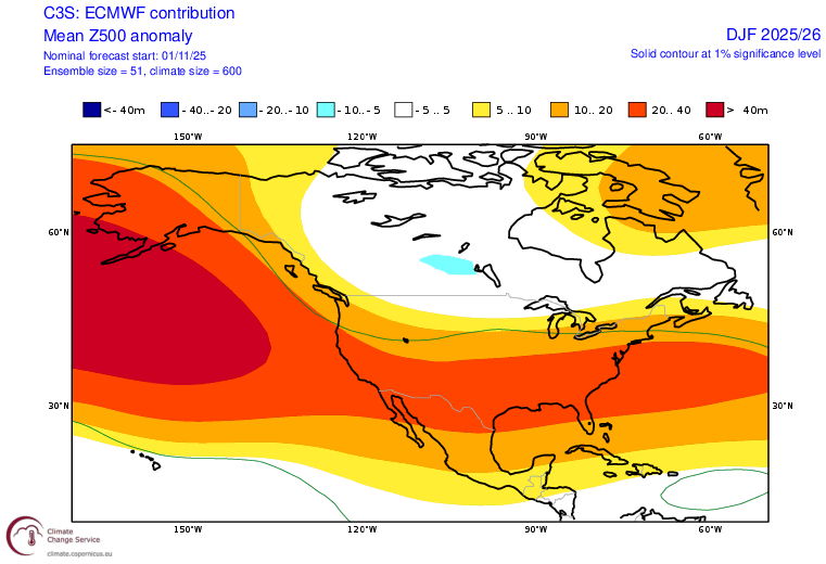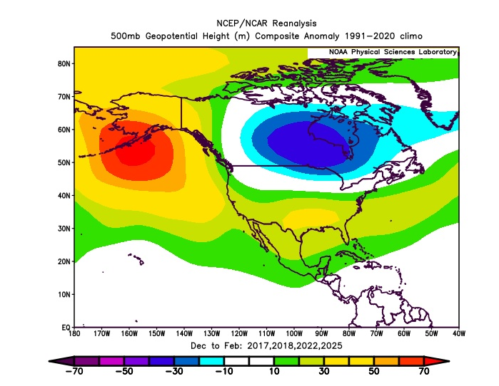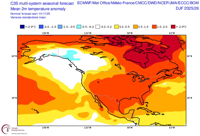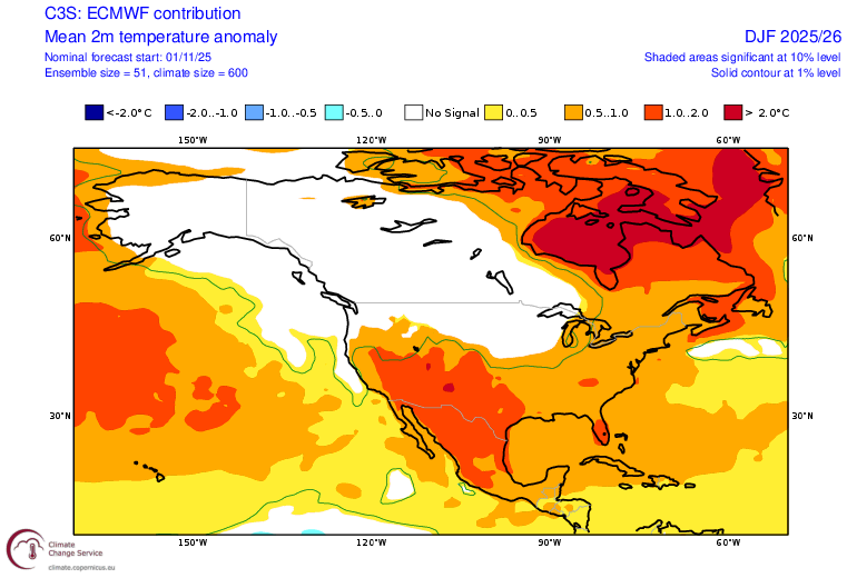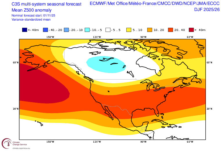 A classic La Niña winter appears to be on the way. There will likely be some interesting developments, along the way, particularly if a sudden stratospheric warming event materializes in late November or early December. Then, the potential would exist for a cold end to December and possibly first half of January, if the polar vortex is displaced. Based on ENSO and the teleconnections, there is a signal for the coldest month relative to normal to be January in the Gulf Coast and Southeast. Perhaps the Arctic outbreak of November 10-11 that saw the coldest anomalies affect the Southeast offers a hint of how things might unfold in January. The C3S multi-model system appears to be quite aggressive with above normal temperatures. Last winter, there were some indications that it was too aggressive with the warmth, but I deferred to the guidance. That proved to be a bad mistake leading to an overly warm idea. This time, I am giving more weight to the analog cases for insight. The ECMWF seasonal forecast appears to be a better fit with the final cases I selected based on ENSO and the teleconnections. My selected comparison cases for Winter 2025-2026 are Winters 2016-2017, 2017-2018, 2021-2022, and 2024-2025. C3S Seasonal Forecasts: ECMWF: Analog Cases: ECMWF: December-February 500 mb Progression: Analog Cases: December-February 500 mb Progression: Select Snowfall Estimates: Albany: 45"-60" Baltimore: 10"-15" Binghamton: 80"-90" Boston: 35"-45" Buffalo: 85"-95" Burlington: 75"-85" Caribou: 110"-125" Chicago: 30"-40" Detroit: 40"-50" New York City: 15"-25" Newark: 15"-25" Philadelphia: 10"-20" St. Louis: 10"-15" Toronto: 100 cm - 125 cm Washington, DC: 8"-12"