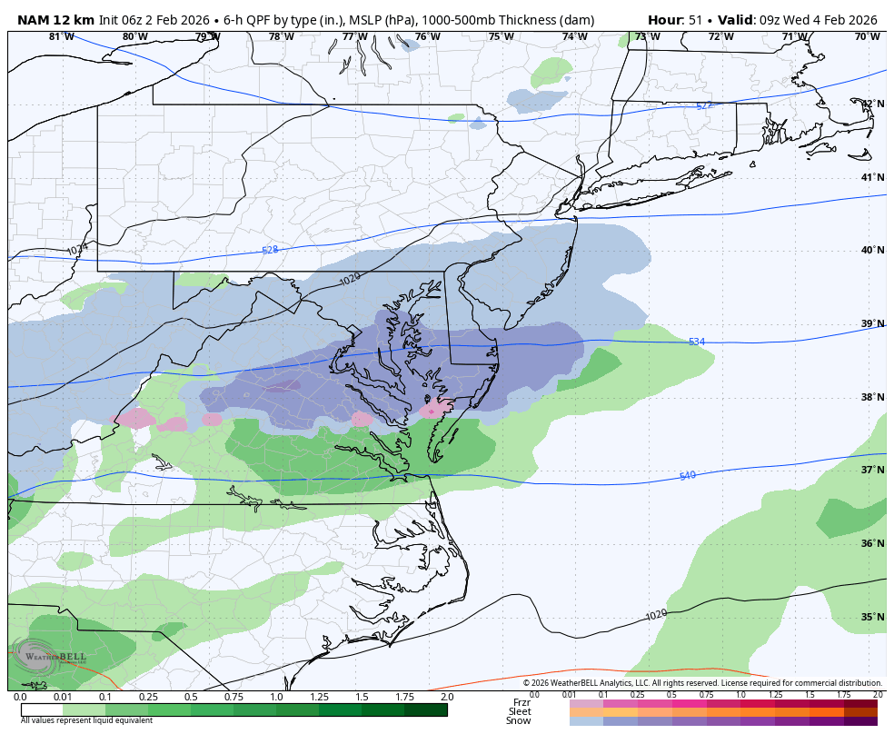 Latest Natty Blend looks like a general half inch across the region east of the western highlands. The forecast of less than an inch seems reasonable.
