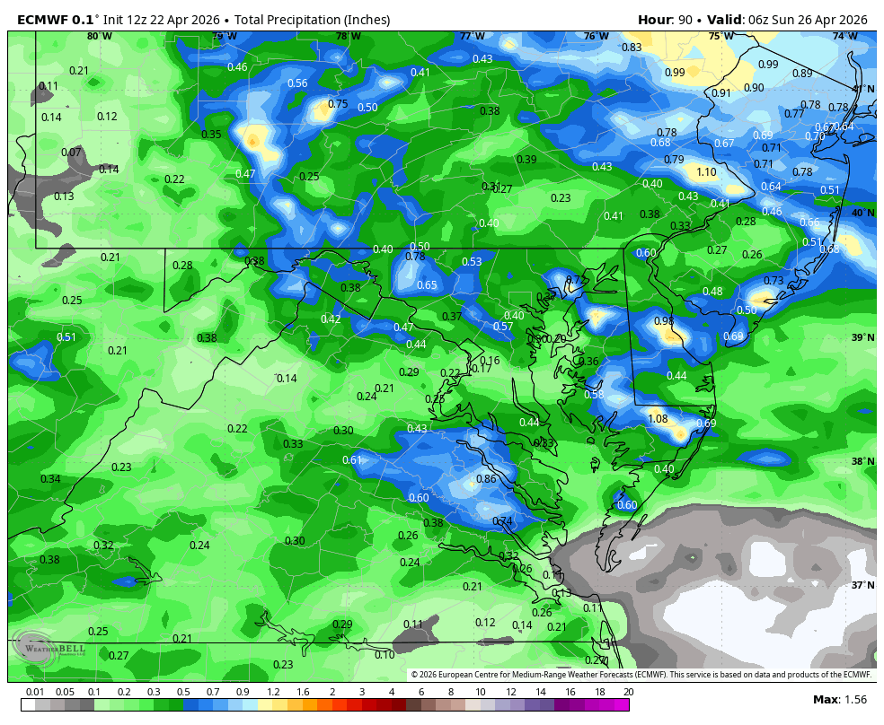 Shocker, 00z Euro moved precip maximums to PA. We get some, but nothing sustained it seems.