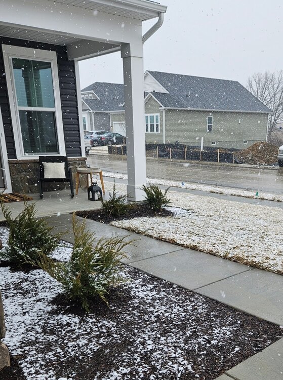 Finally looks wintry out with roofs and grass coated and mod snow. Enjoying a smoked whiskey while watching -