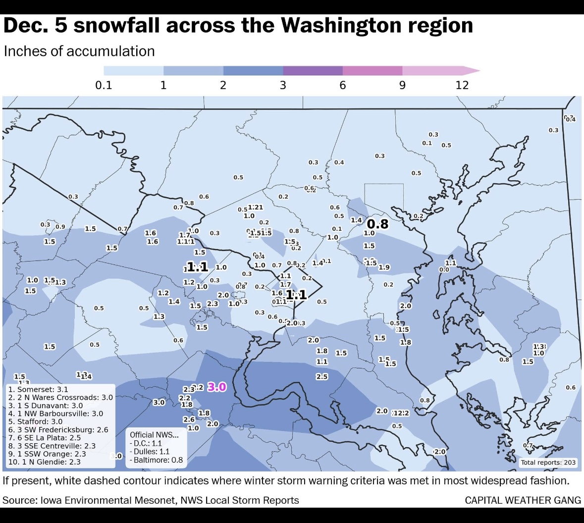 First event at my new home and ended up in the southwest snow-hole! I actually did end up with a respectable 1.3” that has since largely melted. Still very pleased with this one, early December snow is all gravy to me. Also, i’ll have to go back and check later but not sure I got warmer than 32 all day, very impressive for this time of year
