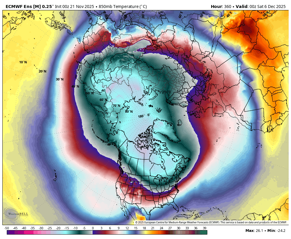 Snowcover and cold both become established in Canada by early December. This should help as the cold gradually pushes South with time.