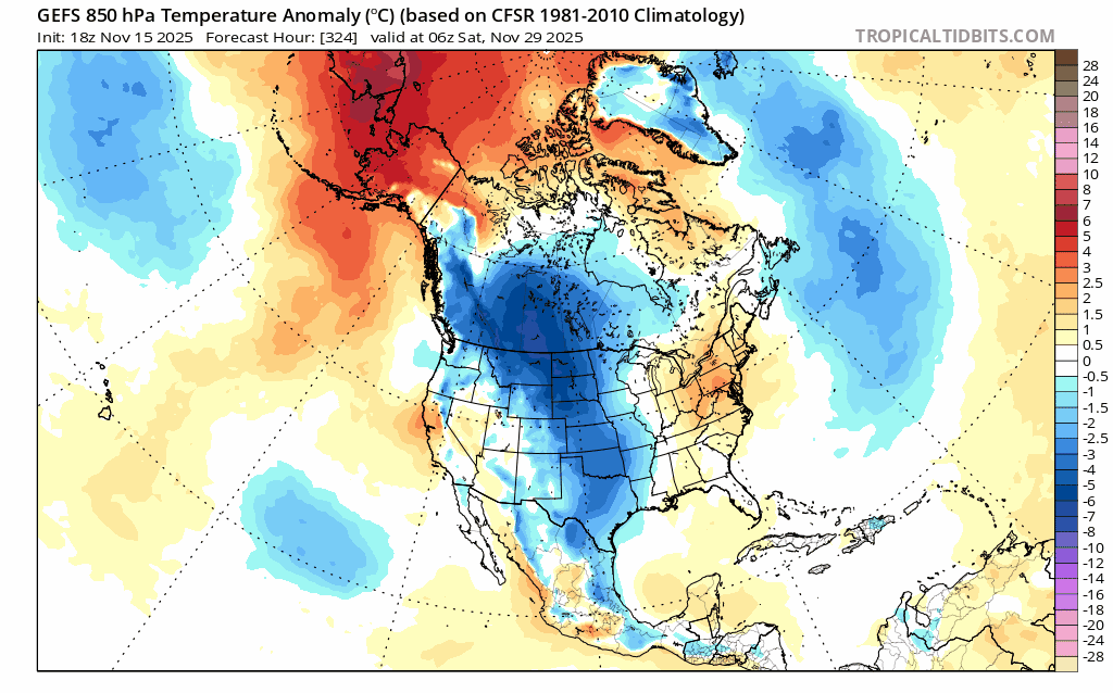 Kidding aside… The op/ens are pretty much what we’ve been saying still. The cold dumps to our west and we eventually get the moderated airmass. Maybe it gets a little wedgy in the region (more favored up here) when the ridging builds in here, but it’s probably a continued swing of AN and slightly BN. -