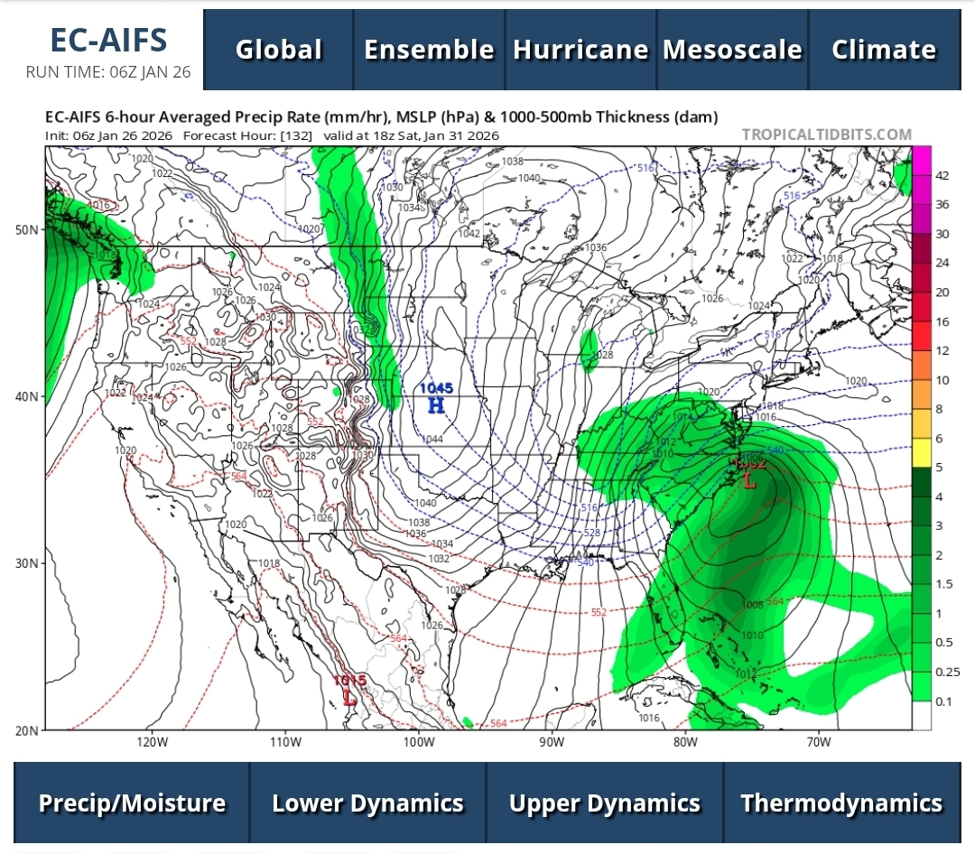 Possible coastal storm centered on Feb 1 2026.