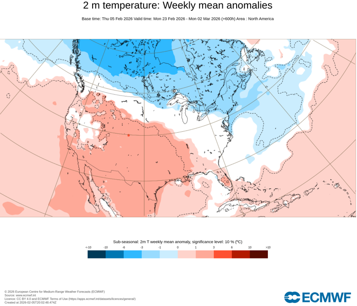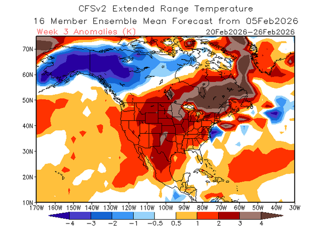 That map is exactly why predicting snow in a seasonal forecast is very difficult. Temps and precip patterns are generally easier. During La Nina, the west end of the state normally finds its way into snowfall. During weak La Nina's w/ a -QBO, the east end of the state often finds its way into normal snowfall(or above) with very cold temps. Ice hit the middle of the state. Whether we like the frozen precip types or not....the state has seen plenty of frozen precip. Many places are out of salt. Been a pretty brutal stretch of winter for most in the forum(not all). What has been interesting this winter is to see the MJO really not play a bigger role. HL blocking and the EPO have ruled the roost so far. The big losers in the snow sweepstakes(and this can flip on a dime) so far have been portions of the Sierra Nevada and a good portion of the Rockies. Canada actually has done well north of Seattle. I bet if one pulled out a drought map, that map above would likely match it. Drought begets drought. Middle TN had drought for a good part of summer and fall. NE TN finally found some snow after several winters of watching others get snow, and a lot of it. We didn't experience the long term drought which others have had. We had some rain this fall, and that is often a harbinger of where snow will fall during winter. I do think we are slowly going to climb out of this pattern(trough east...ridge west) as February progress. I think we see warm weather next week(though maybe less warm than originally modeled), and then maybe one last parting cold shot(and maybe very cold) at the end of February and into early March. Modeling has this to some degree, and LC has mentioned it as well (has the hot hand). The Euro Weeklies are not warm for March...and many of us will be ready for spring. LC says the pattern should flip pretty quickly during March to warm. The Weeklies aren't quite on board with that yet.