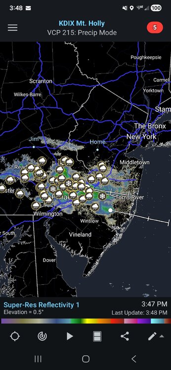 I'm with you. I think there will be a decent swath of accumulating snow overnight tonight. I just personally think the 12z HRRR was too "wet" into the cold/dry air and a little too far north with the axis. It also keeps measurable precipitation going further east into NYS and CT. That might be suspect based on other guidance drying things out quicker. The 18z is a little drier and maybe a hair south of 12z. I think it has been incrementally shifting towards model consensus. The 18z RRFS also looks a touch drier and more reasonable to me. The GFS and CMC have likely been too far south and late to correct. The best bet for accumulating snows looks to be in PA right now. But we've seen cases before where banding unexpectedly extended accumulating snows eastward as a shortwave decayed into the residual cold of a longwave trof. The radar will be interesting late tonight.