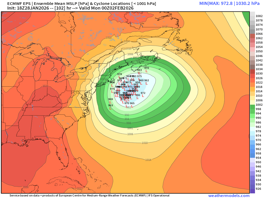 Possible coastal storm centered on Feb 1 2026.