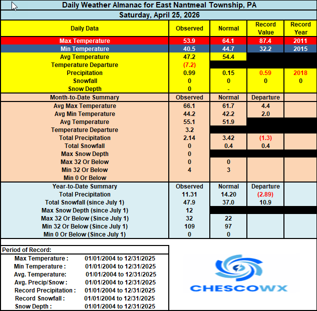 After tagging 70 yesterday the first thunderstorms in 6+ months rolled through overnight dropping .52" exacerbating the ongoing flooding issues. Creeks and rivers running high with some even out of their banks at levels I haven't seen in a few years. light rain/fog/45 at noon. Will need a fire today to take the chill out of the house.