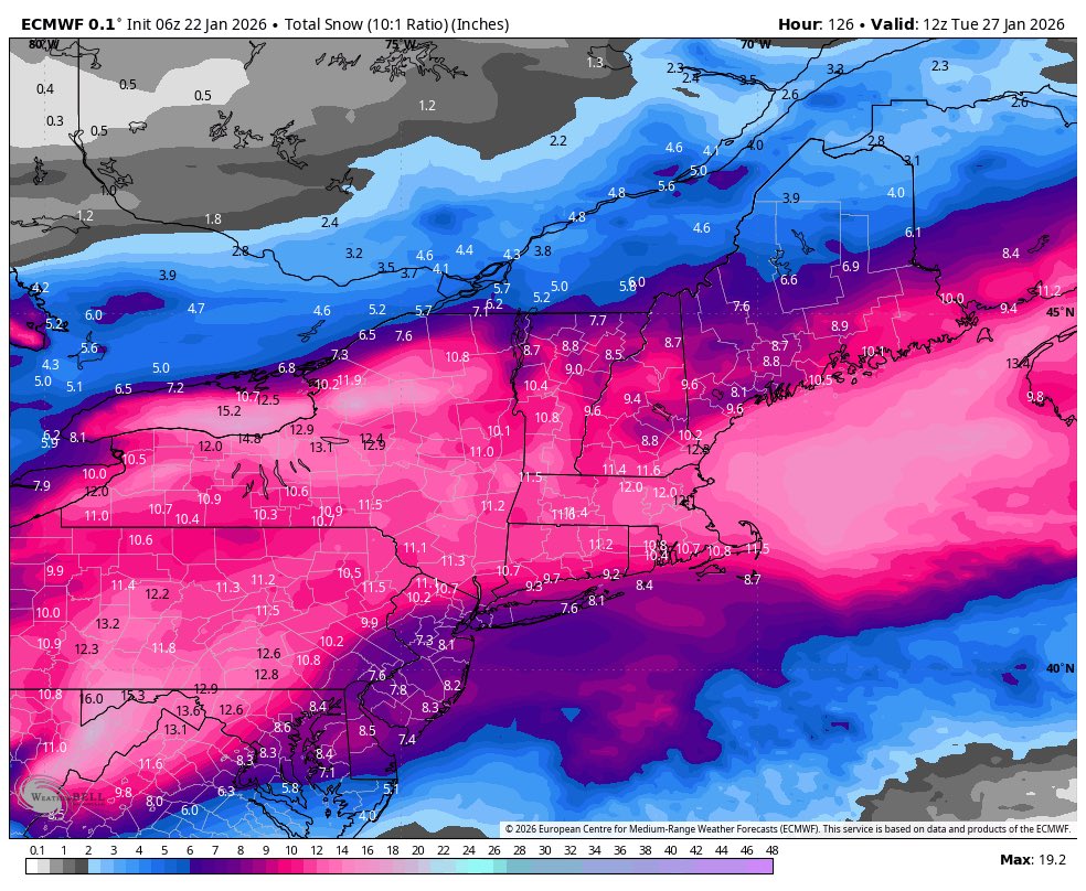 Good signal from the 6z Euro for at least a 6-8” floor around NYC and LI before any sleet arrives later Sunday using conservative 10-1 ratios which could be on the low side. -