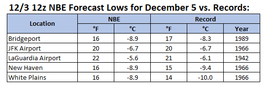 For reference, New York City area locations where daily records could be challenged or broken on December 5th: