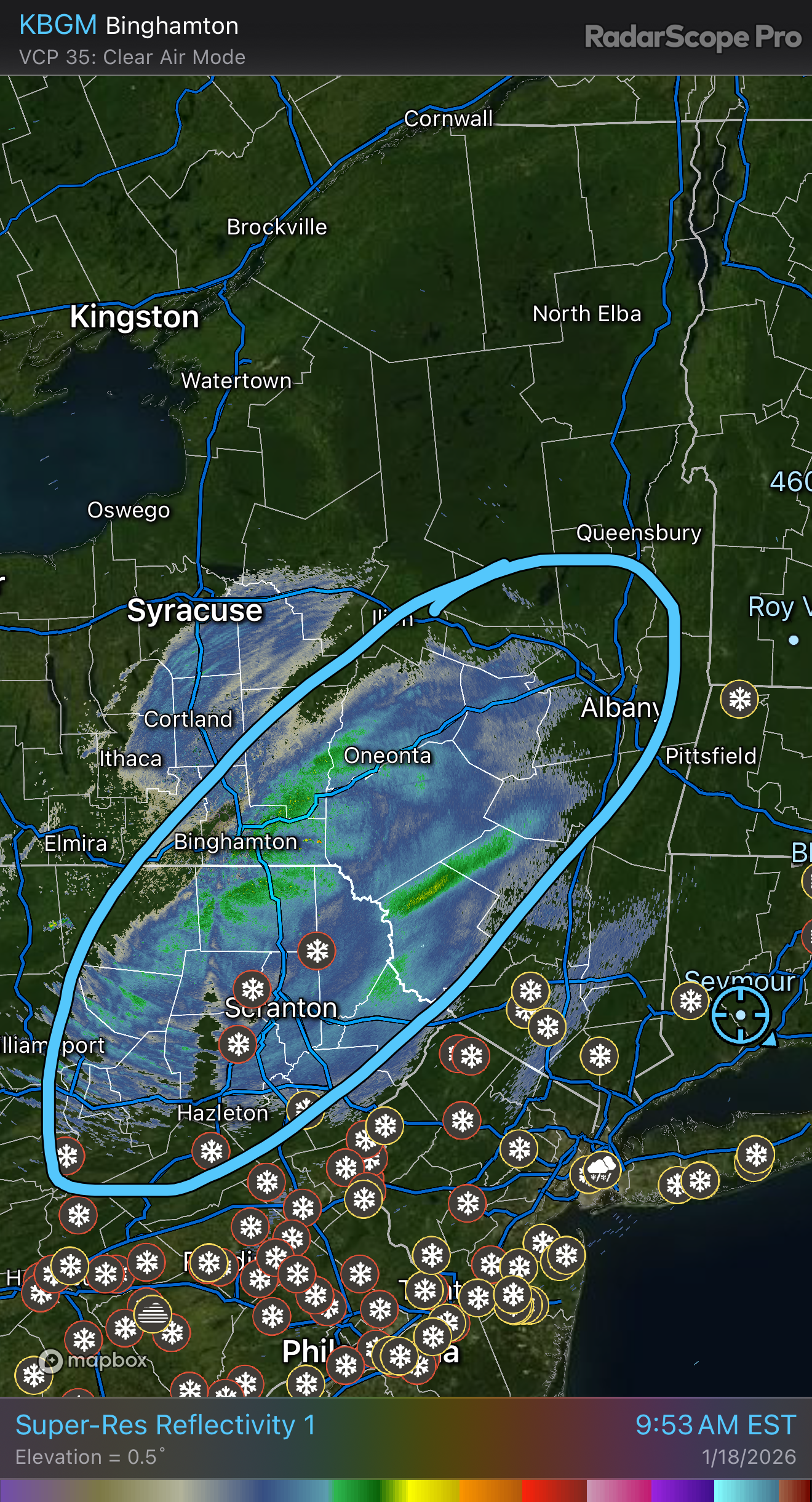 It seems to me there were two bands modeled , this one albeit stronger than modeled, then the one to our NW, which still verified, so I feel like it’s going as planned. -