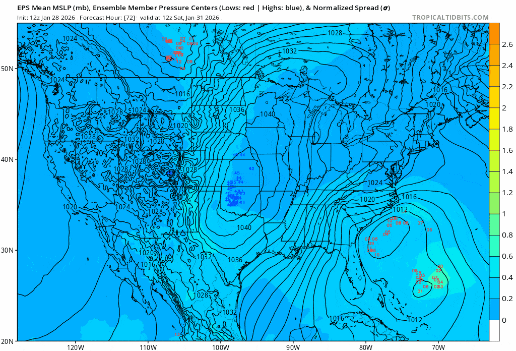 Possible coastal storm centered on Feb 1 2026.