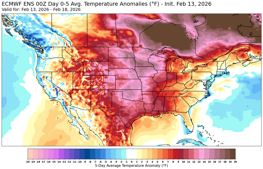 This is for Feb 28? In south central TX I can already attest to delightfully mild weather on Feb 12! 84 degrees with dews already in the low 60s! We are all dancing around with joy down here! I want to SCREAM THIS FROM THE HOUSETOPS, UNTIL I AM HOARSE! SPRING IS COMING ON SUPER EARLY! We are boisterously CHEERING LA NINA on with ENTHUSIASM!