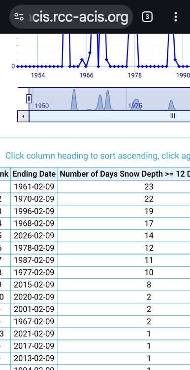 It’s interesting that the last top 10 coldest temperature for Boston in 2023 was during one of its warmest winters. Time Series Summary for Boston Area, MA (ThreadEx) - Dec through Feb Lowest Minimum Temperature Click column heading to sort ascending, click again to sort descending. 1 1933-1934 -18 0 2 1942-1943 -14 0 - 1917-1918 -14 0 3 1881-1882 -13 0 4 1956-1957 -12 0 - 1883-1884 -12 0 5 1913-1914 -11 0 - 1895-1896 -11 4 - 1875-1876 -11 0 6 2022-2023 -10 0 - 1885-1886 -10 0 - 1884-1885 -10 0 7 2015-2016 -9 0 8 1919-1920 -8 0 - 1902-1903 -8 0 - 1872-1873 -8 0 9 2003-2004 -7 0 - 1980-1981 -7 0 - 1906-1907 -7 0 - 1893-1894 -7 8 10 1923-1924 -6 0 - 1903-1904 -6 0 - 1894-1895 -6 8 - 1887-1888 -6 0 - 1877-1878 -6 0 Time Series Summary for Boston Area, MA (ThreadEx) Warmest Winters Click column heading to sort ascending, click again to sort descending. 1 2001-2002 37.8 0 2 2019-2020 37.7 0 3 2015-2016 37.5 0 4 2011-2012 37.1 0 5 2022-2023 36.7 0 6 1932-1933 36.6 0 7 2023-2024 36.4 0 8 2016-2017 35.6 0 9 1990-1991 35.4 0 - 1931-1932 35.4 0 10 1936-1937 35.2 0 - 1912-1913 35.2 0
