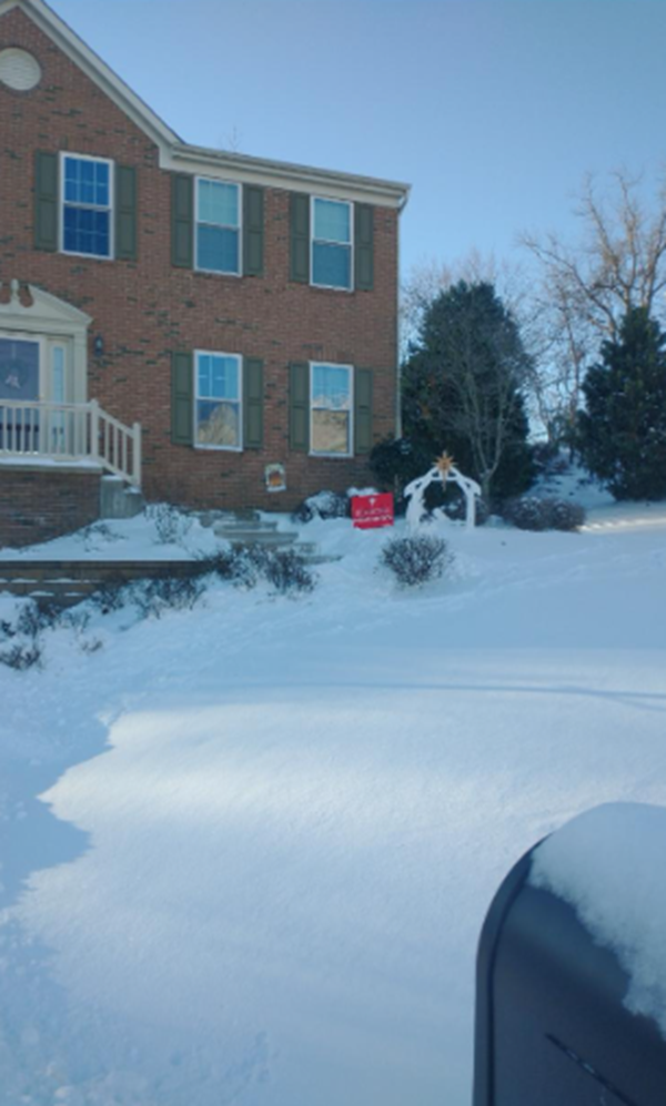 Had about 3/4" from the squall. Enough to cover everything nicely. One of my younger cousins staying here for the holiday decided to take the go kart and drift it around the neighborhood. Starting the new year off great. Pissing off all the hungover neighbors