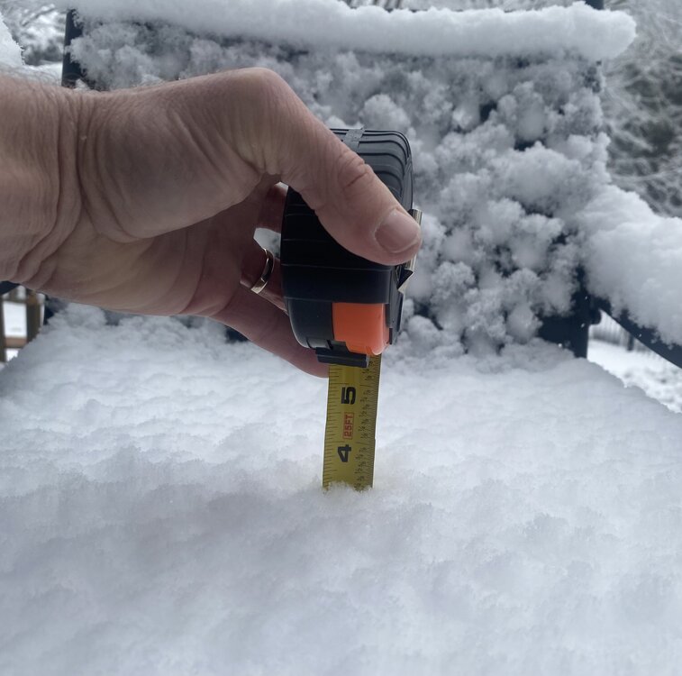 Front is about to move through here. Light snow has increased in intensity and wind is stirring. Just had a gust to 23. Midnight high was 31 degrees.