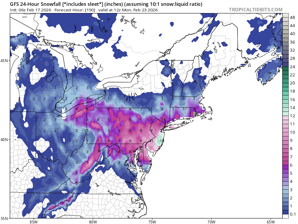 The OPs have been shifting around on the track and timing every 12 hrs. So we should just use an ensemble blend at this point and hold off on the details for a few days. It’s tough to get one really big storm when the systems are only 48hrs apart. But it’s not impossible. We will need some extra thread for this needle.