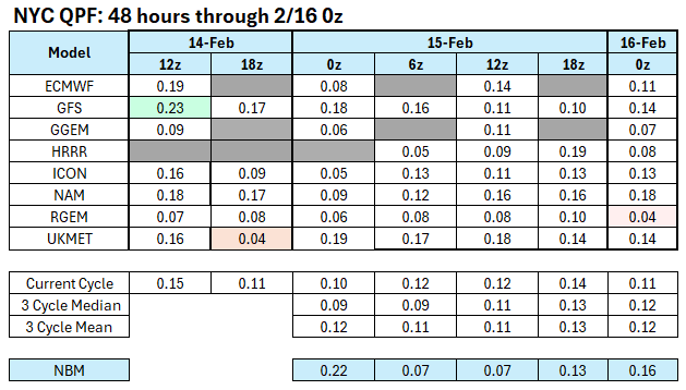 Overnight, New York City received 0.08" of precipitation. The 0z HRRR followed closely by the 0z GGEM did best with the final amount. -