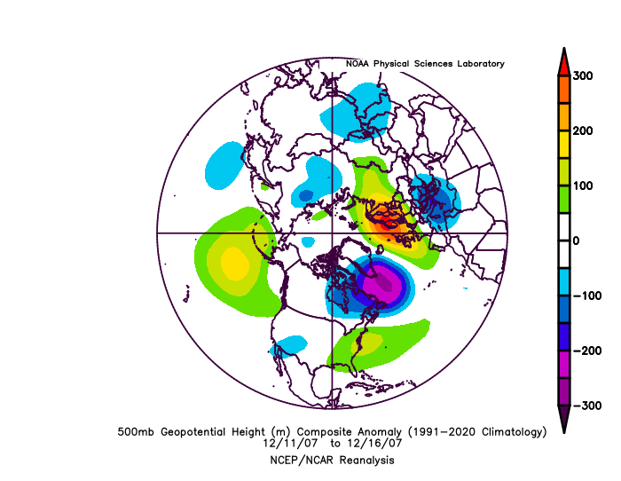 14. Not sure we’d need any NAO ridging with that look. That’s pretty cold. That SE Canada and Atlantic look is very reminiscent of early to mid December 2007…the WPO is more negative than ‘07 though…that’s pure cross polar there