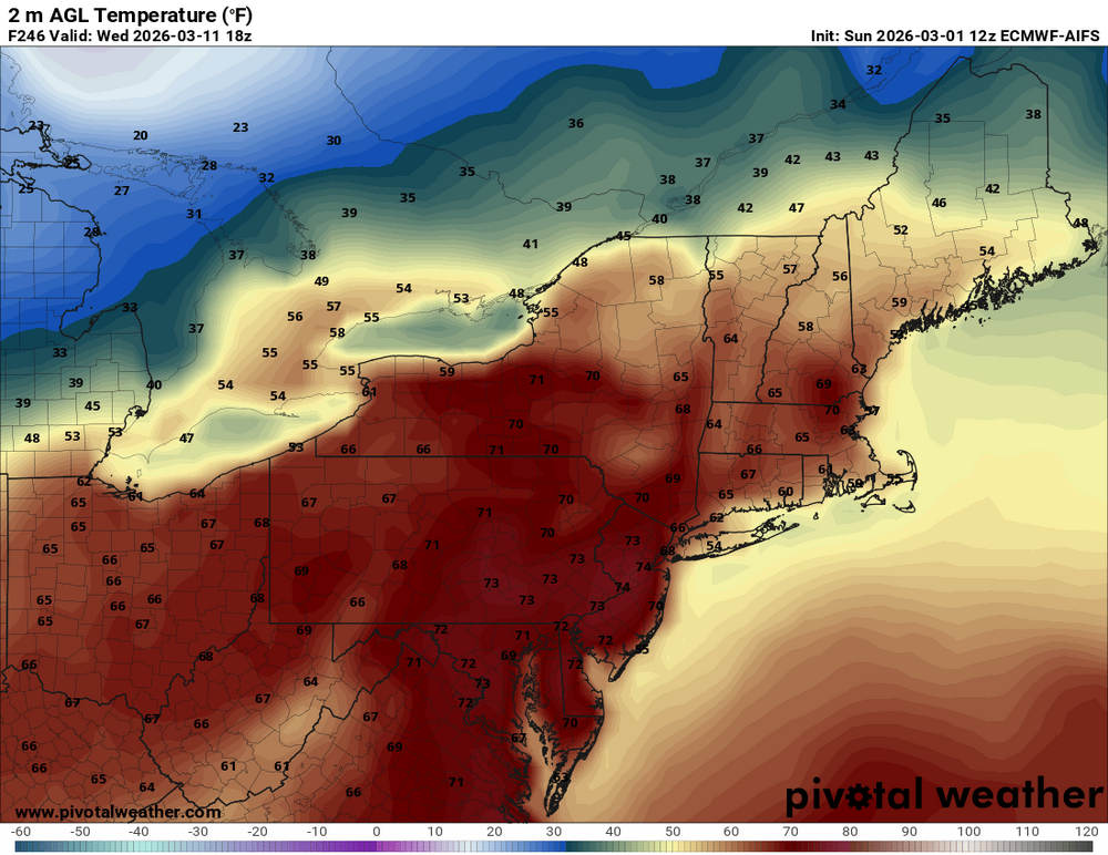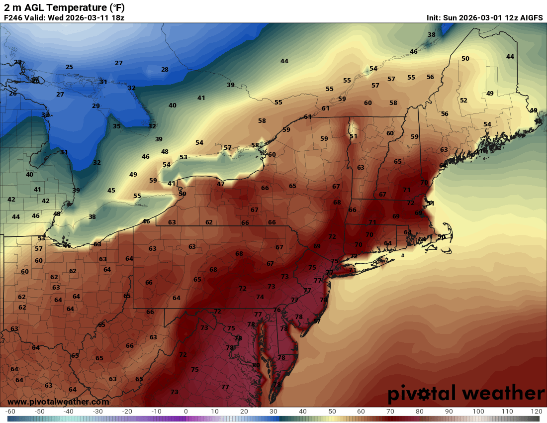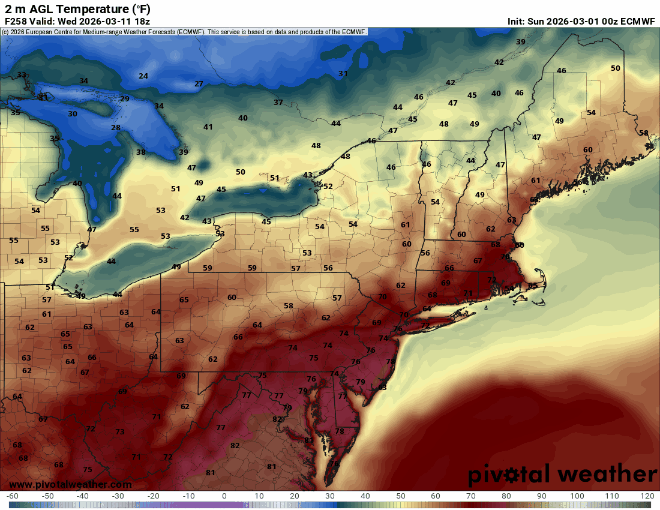 Not true. I understand youre still relatively new to the region, but March/April climo is its own entity. Unless an abnormally cold pattern is in place to start March, this is the end of deep/sustained winter for the southern Lakes. However the mere chance of a snowstorm, much less measurable snow, is very much there into mid April amd sometimes beyond. -