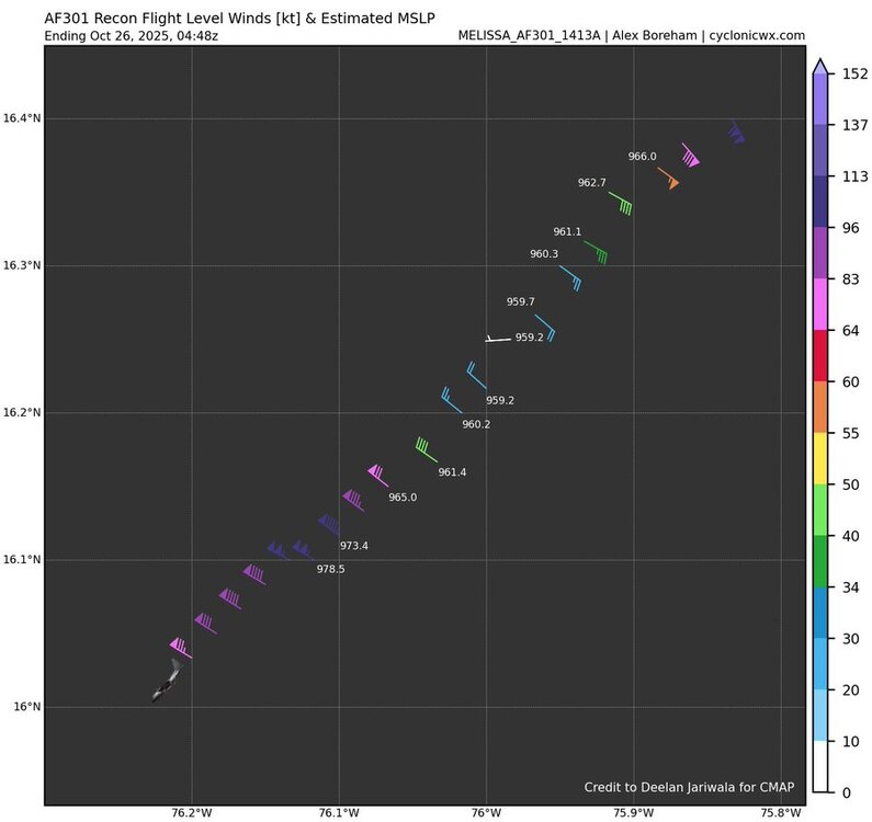 5. Good lord. ~940mb by morning? Maybe even lower? Throw intensity guidance out the door, Melissa is about to go low