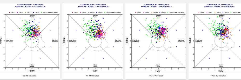 Euro mean seems to being getting more support each day it will finally get out of P6,while the MEAN is faster and little support but P7 isnt horrible
