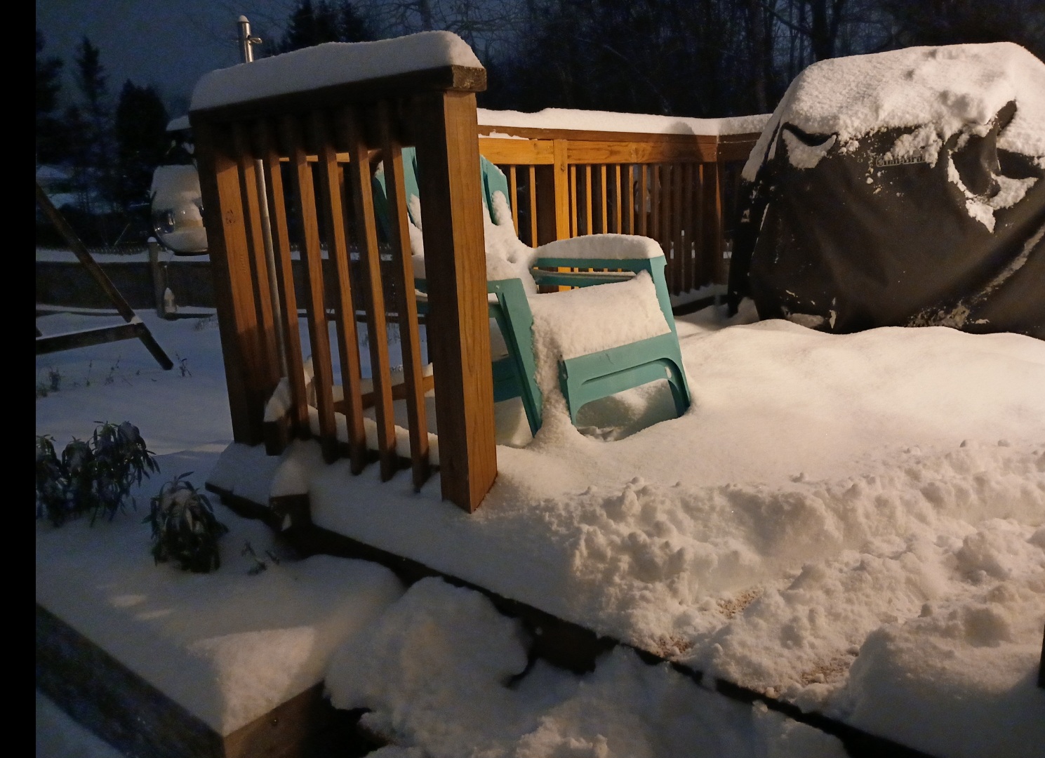 A lick and a promise from the departing storm. It's snowing. 34.7⁰ I'd play it up like some kind of cosmic irony, but I thought this would happen.