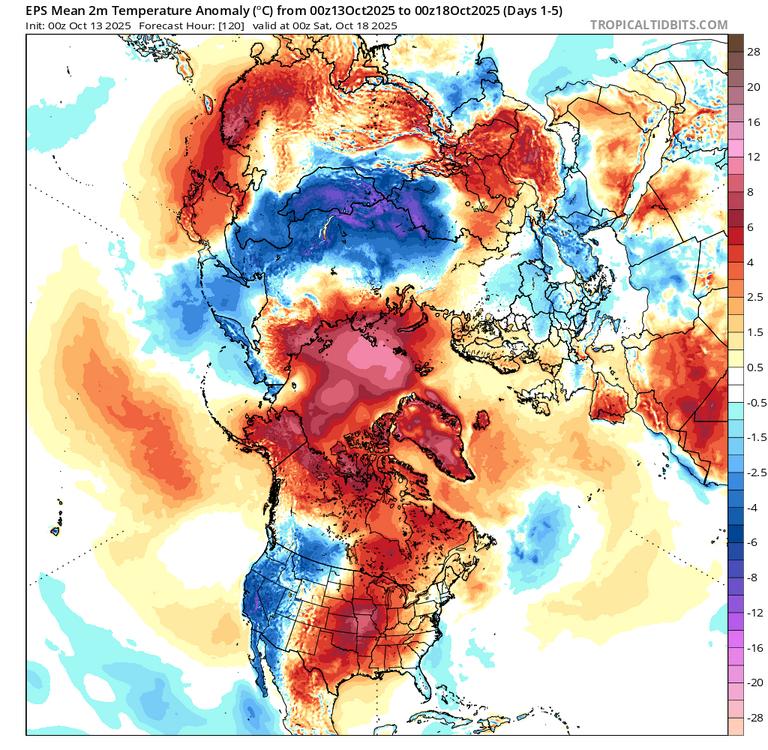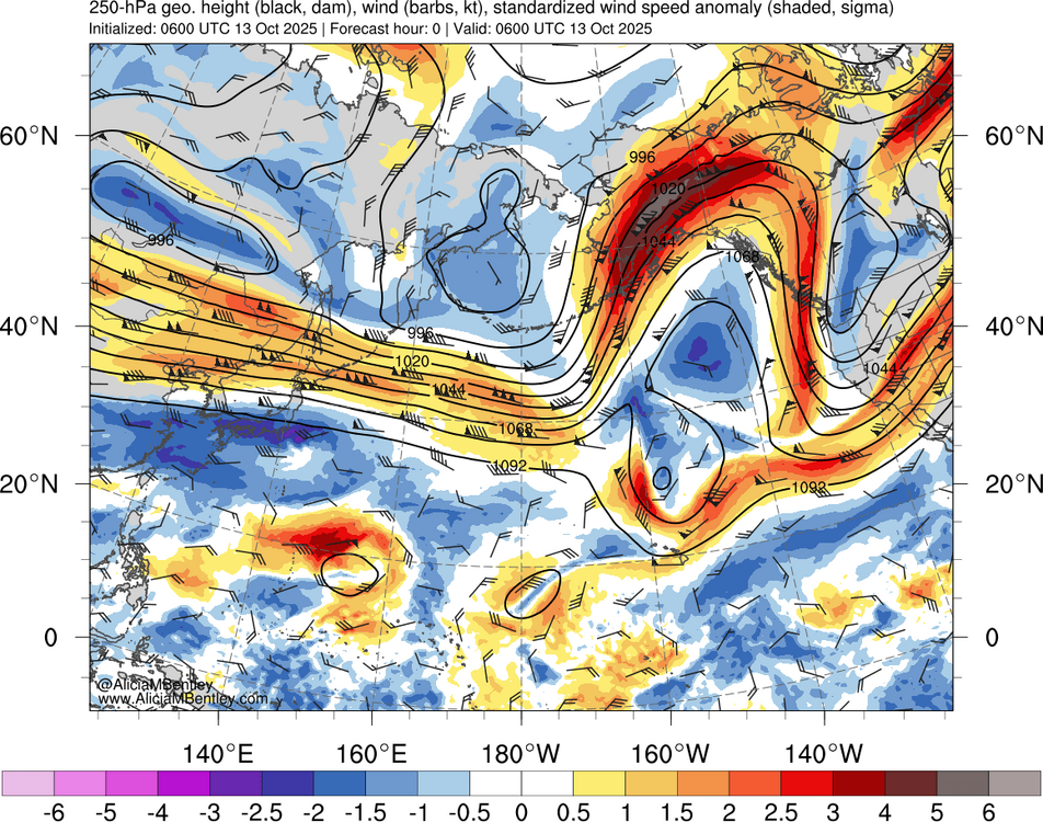 Another 5 sigma jet max for Alaska. The strong gradient between the record SSTs over the WPAC and Siberian cold is driving this. So this leads to the continuing warmth for North America.