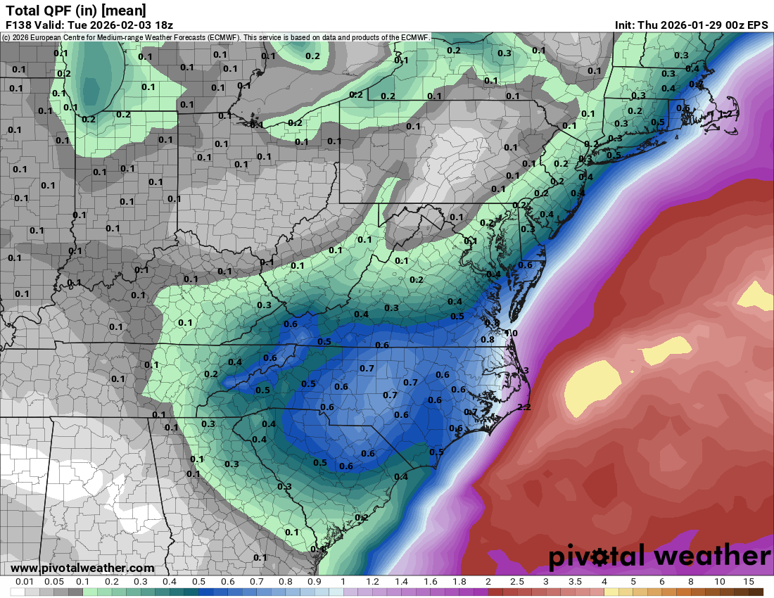 I’m not telling anyone anything they don’t already know, but there’s still plenty of time for significant changes (good or bad). It’s for this reason that it’s important not to get too emotionally high, either way, from one model cycle to the next. For example, I’m naturally most concerned with what the SE coast of NC gets being that it’s where my family and I live. Although things currently look good for us, I’m well aware of just how quickly things can change with relatively minor adjustments synoptically. The peak of the storm would occur around midnight on Sunday (Saturday overnight), which is still about 66 hours out. Having literally been tracking and forecasting in eastern NC for more than 35 years, I know the importance of keeping one’s expectations in check and that it’s best to retain a more cautious approach with the snow accumulation projections until we get inside the 36-48 window from peak conditions (not simply the start of the event). All that said, I’m genuinely hoping for an event that’s most pleasing to the vast majority of this board/sub-forum! -