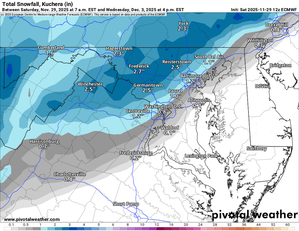 Euro continues its trend of 10 miles SE every model run. Maybe by 0z DC gets 2 inches
