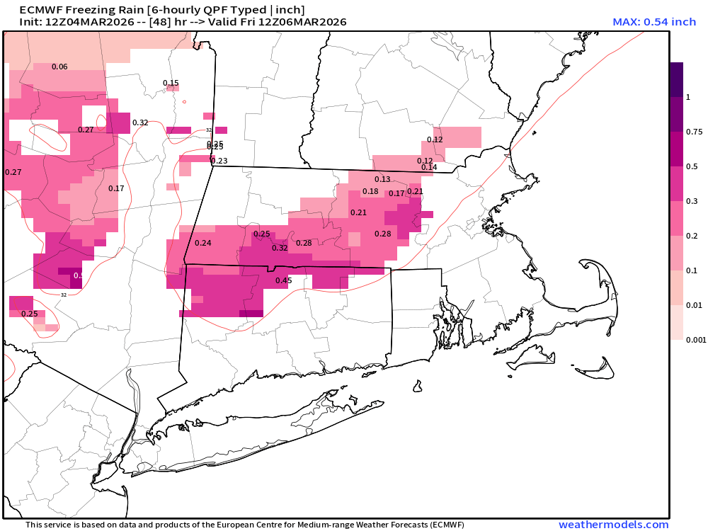 30F with freezing rain. Ice coated trees. Snowpack. Frozen roads and sidewalks.