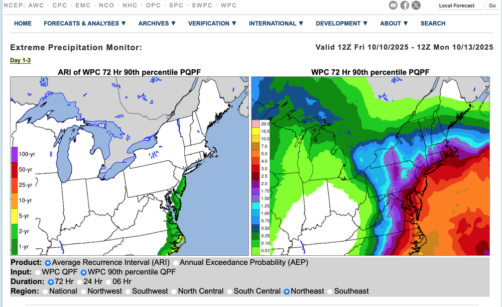 "Potentially" powerful Nor'easter Sun-Mon 10/12-13/25 with needed rain-especially south of I84, and fairly high impact sct coastal gusts 50+ MPH and possibly moderate or greater coastal flooding at the midday Sun and Monday high tide cycles.