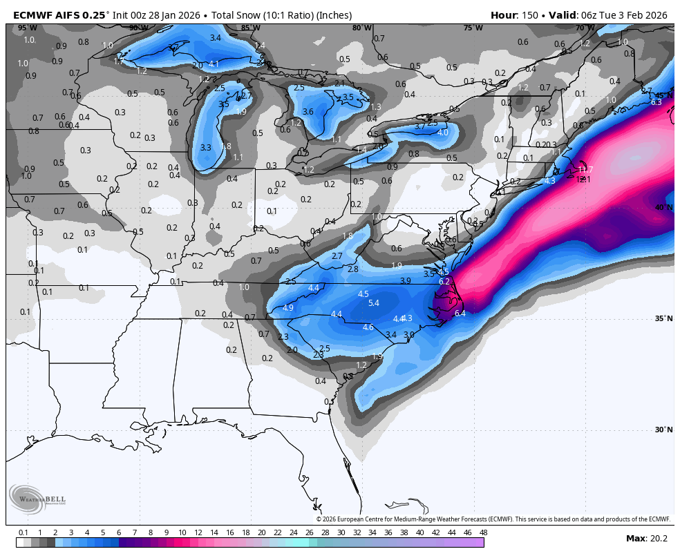 This thing is going south. This has southern mid Atlantic and Boston/Cape special written all over it. Not one model is being “stubborn” showing us in the heavier snows. This is not our storm. Will the precip shield expand as we get closer? Sure, but we are not seeing more than 2-4” from this set up. It’s too cold. I can see the Carolina’s doing well even .