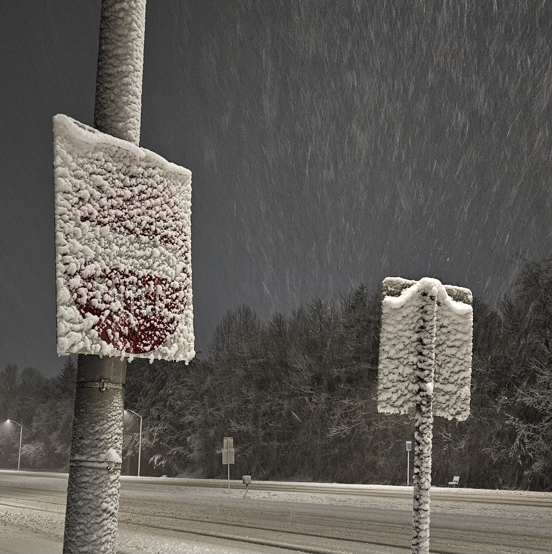 Beautiful wintery night in Germantown. I eyeballed 2.5" on the sidewalk and a retaining wall. And I've done some woodworking in the past. Nowhere near $150k woodworking.. but here we are.. Thanks to the rain, the snow is sticking to everything -