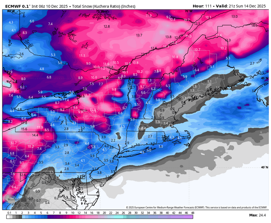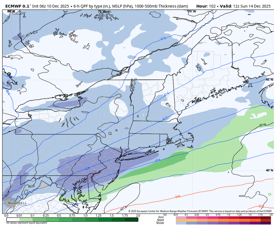 Those solutions look over-produced with QPF to me. Just a gross linear correlation based upon experience; flat 1000+ mb surface waves sufficating amid a compressed non-hydrostatic field don't have envelopes that extend so far on the northern arc. More typically, that's a narrow band. If this AI is self-learning as it is espoused as being, I suspect that is a less it is about to learn. -