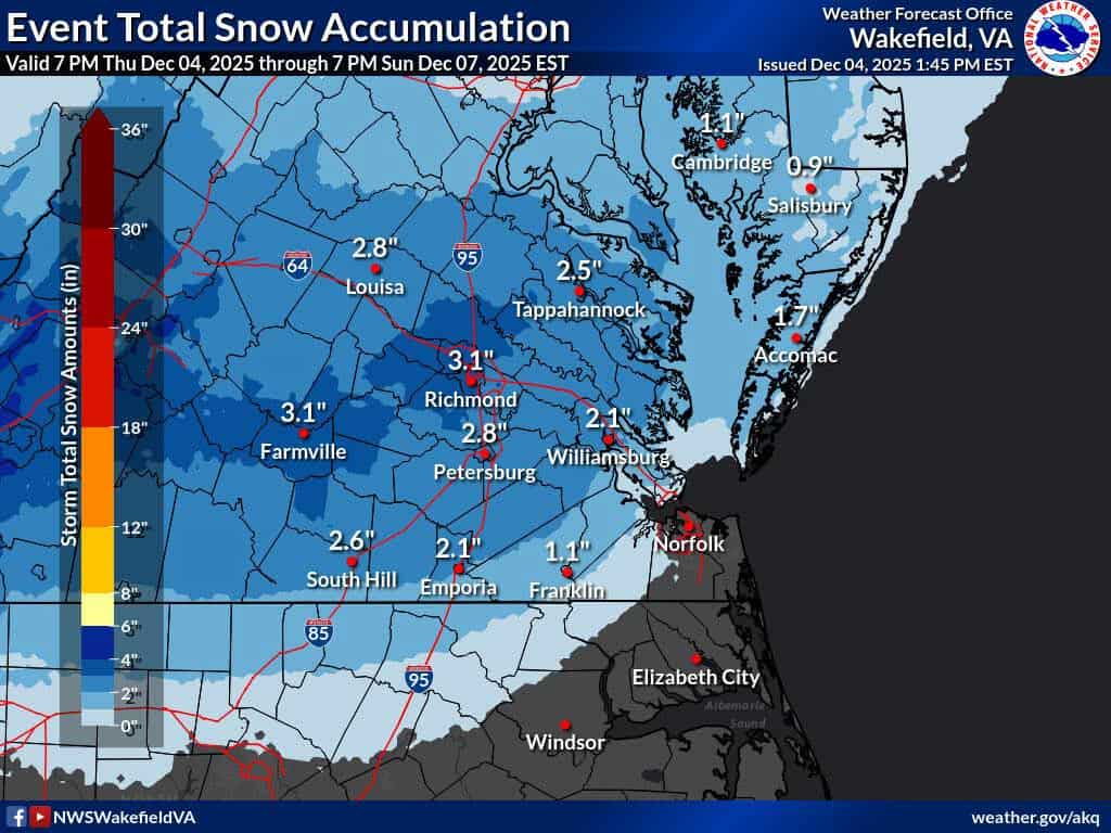 Interesting, the dam is actually on the north side of town but they're low elevation so maybe that explains the lower total? I'd say close to 2" where I am but not entirely sure because it flipped to rain way before I got home.