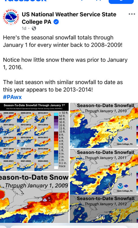 When almost every Op model and every ensemble mean for the past few days has been showing well below normal snowfall over the next 15 days for the 95 corridor (and even inland), despite what looks to be a more favorable pattern after the coming 4-5 day warm-up this week, it's hard to not be a bit concerned that the first 3 weeks in January will be well below normal in snowfall. Hopefully that changes soon.