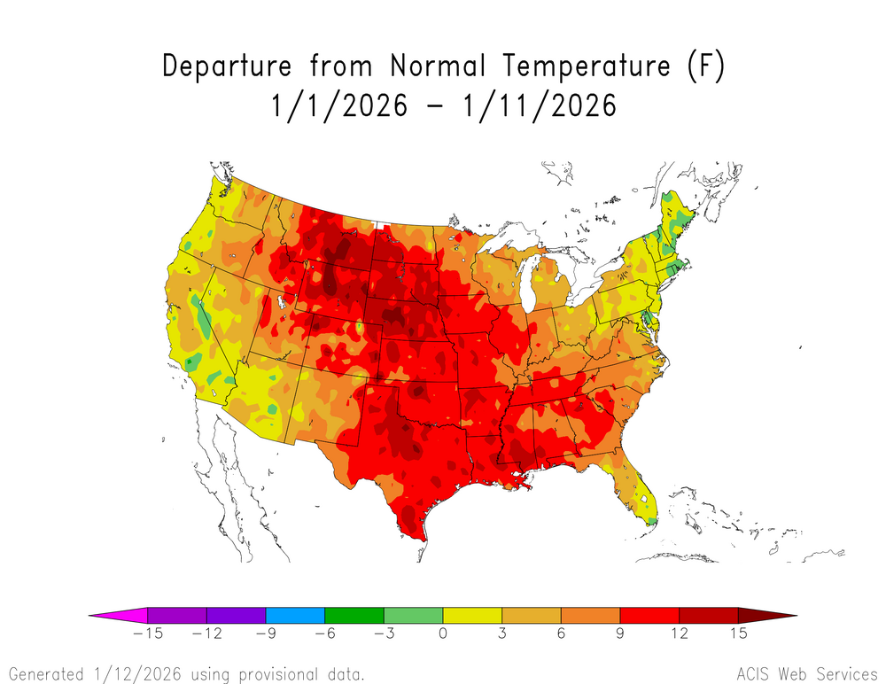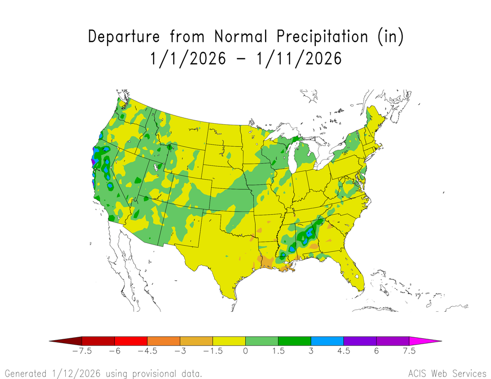 Looks like a continuation of the milder and dry pattern through the next week. EPS January 12 to 19 forecast