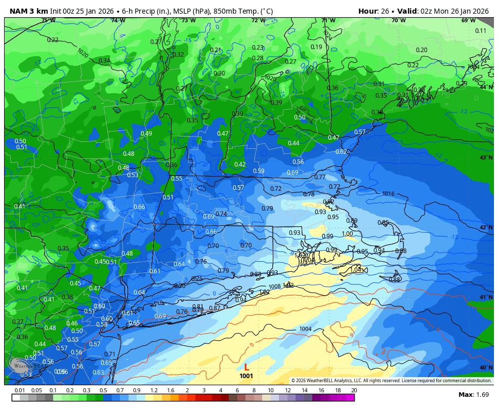 I’m sure it’s somewhat excessive. It probably jumps the sleet line all the way to I-84 still. You can see how the amounts drop from Monticello area to I-84. -