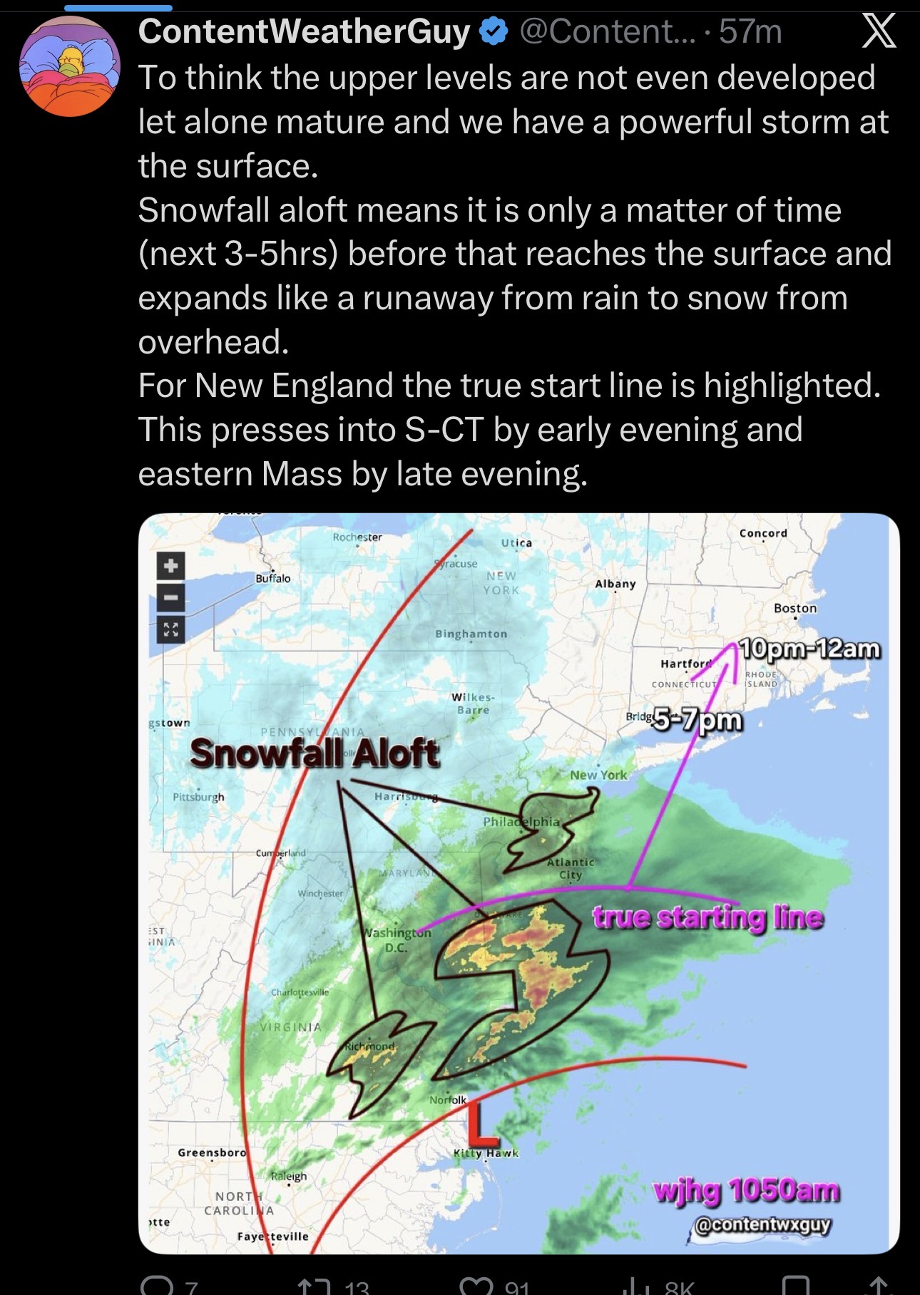 I would be worried for people returning from weekends away, let's say up to Vermont or upstate NY, w PA etc, who might not have heard about the impending blizzard and will be driving into the storm.
