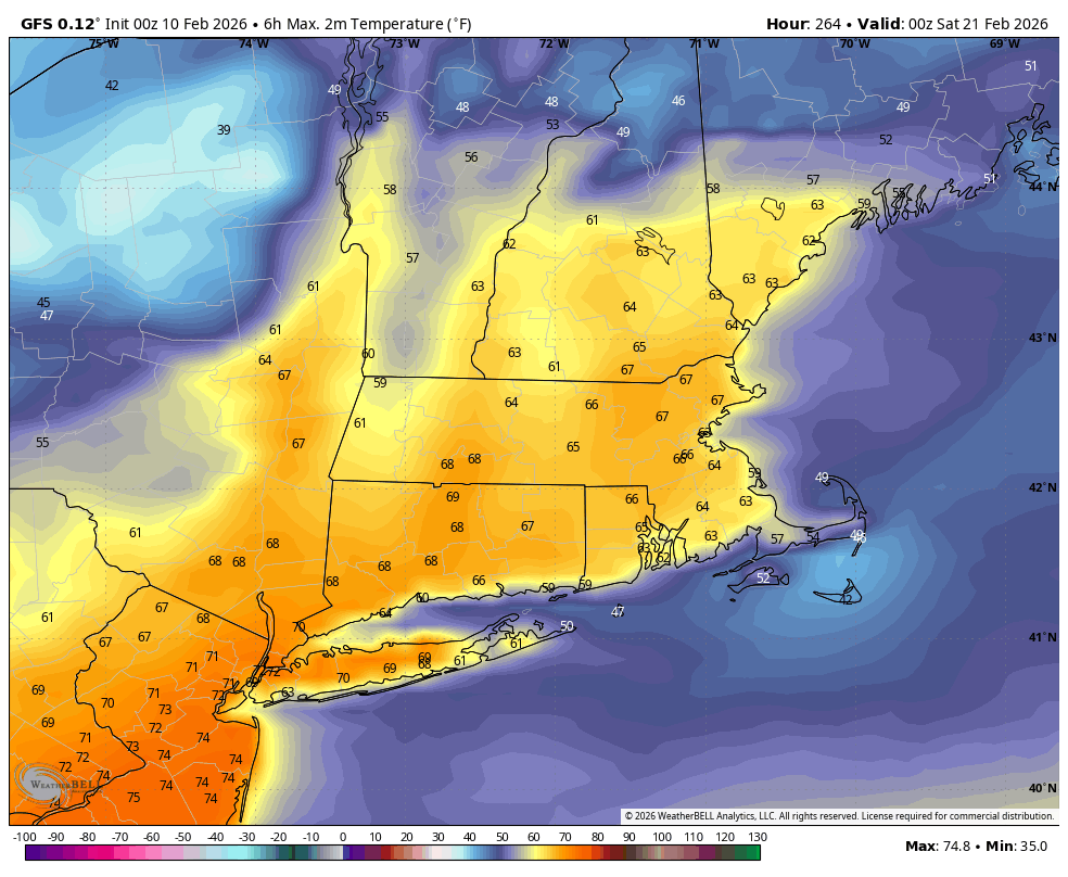 Multi-day mid-month blowtorch on tonight's GFS. It's not good to get that kind of stuff in February, so I hope it is overdoing the warmth. -