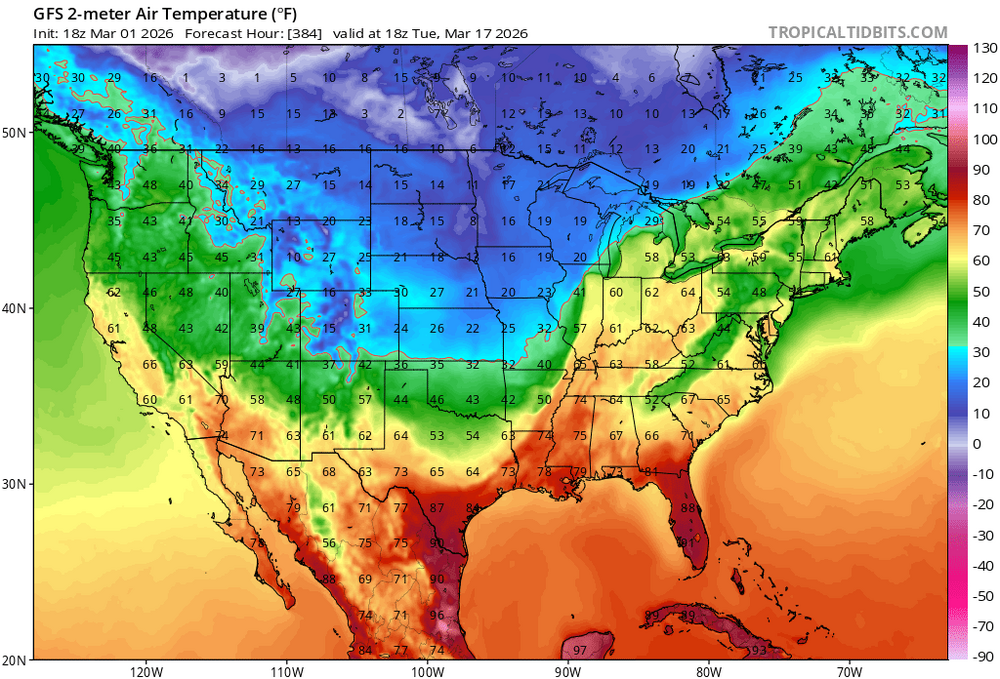 Not ready to buy into an idea of sustained winter return just yet. We might get intermittent cold shots, but on the ensembles it still looks quite brief, and even the long-range GFS/Euro have tempered the cold look for next weekend. A couple days of high 30s spread apart. EPS and GEPS are generally warmer outside the northern plains. GEFS shows a more matriculating cold into the east, but that's at the very end of the run, so the potential length is unknown. +AO and +NAO look persistent. -PNA, as well. MJO into Phase 5 is what I'd call "tempered" or neutral in March, but Phase 6 is straight warm. Magnitude dependent. Seems like a more balanced or oscillating pattern - no full torch or deep winter. Maybe later in the month things move definitively, either way. -