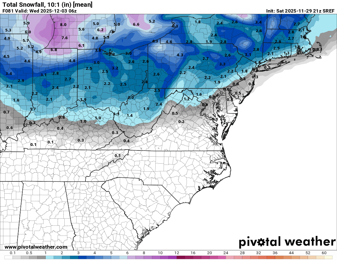 Thinking along the lines of 2-4" for my location and elevation. Expect main / well traveled roads to have few if any issues as they will be heavily treated. Side and back roads I would expect issues. Not a bad start to the season and no matter what the first half of December looks to average solidly below normal.