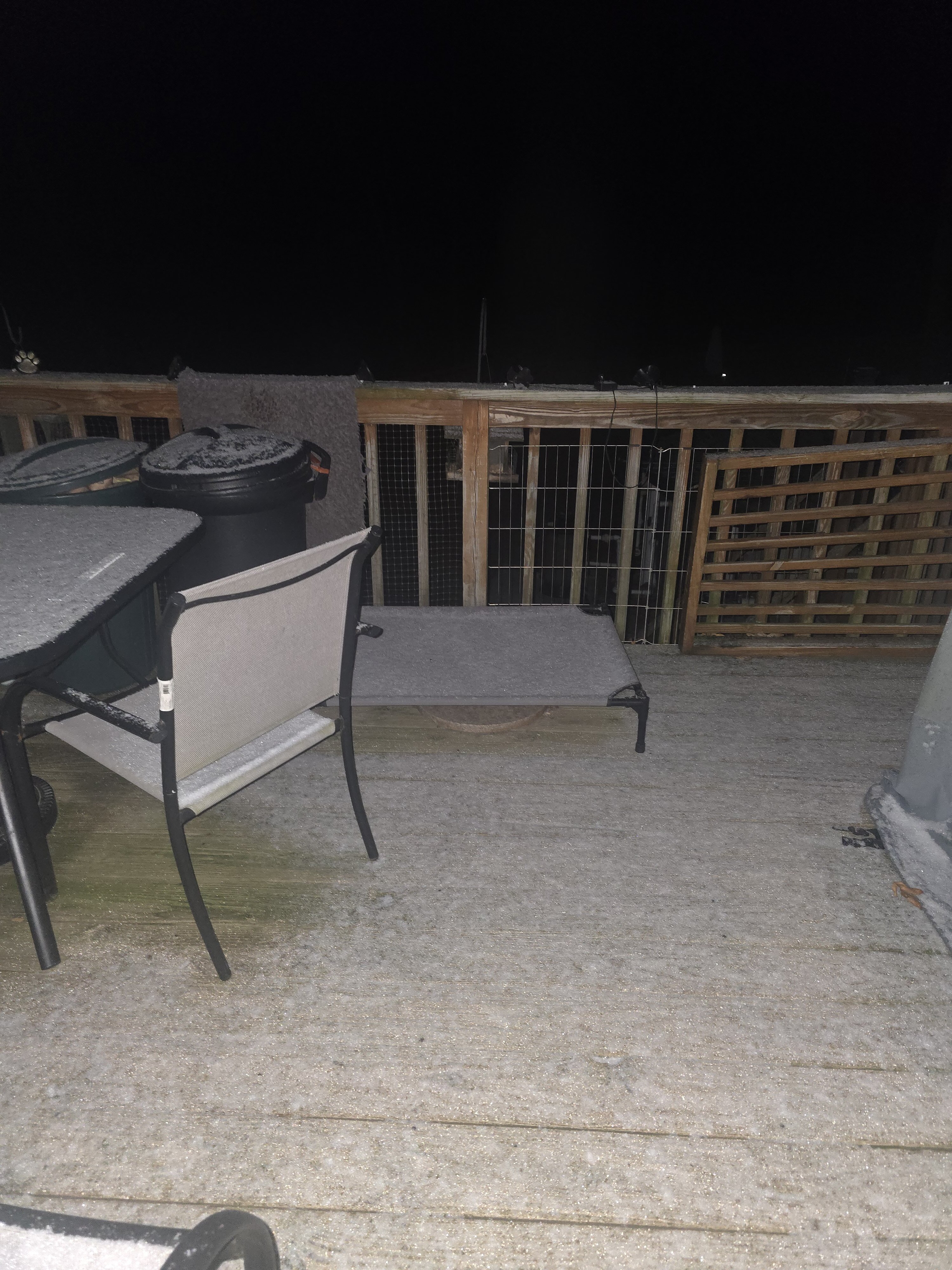 0.7” on the snow board. Now a mix of sleet and freezing rain at 32°. Sidewalks and pavement just a little crunchy.