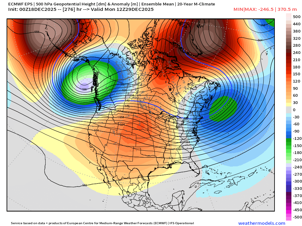 0z AIGFS has 2 snow threats. One starting at 210hrs: https://www.tropicaltidbits.com/analysis/models/?model=aigfs®ion=us&pkg=mslp_pcpn&runtime=2025121800&fh=210 The other threat starting at 288hrs: https://www.tropicaltidbits.com/analysis/models/?model=aigfs®ion=us&pkg=mslp_pcpn&runtime=2025121800&fh=288 Unfortunately, neither Tropical Tidbits nor Pivotal have pretty surface maps showing snow, only precip. But if you use those TT links and look at Pivotal 850, 925 and surface temps, it's snow, or rain to snow depending on exact location.