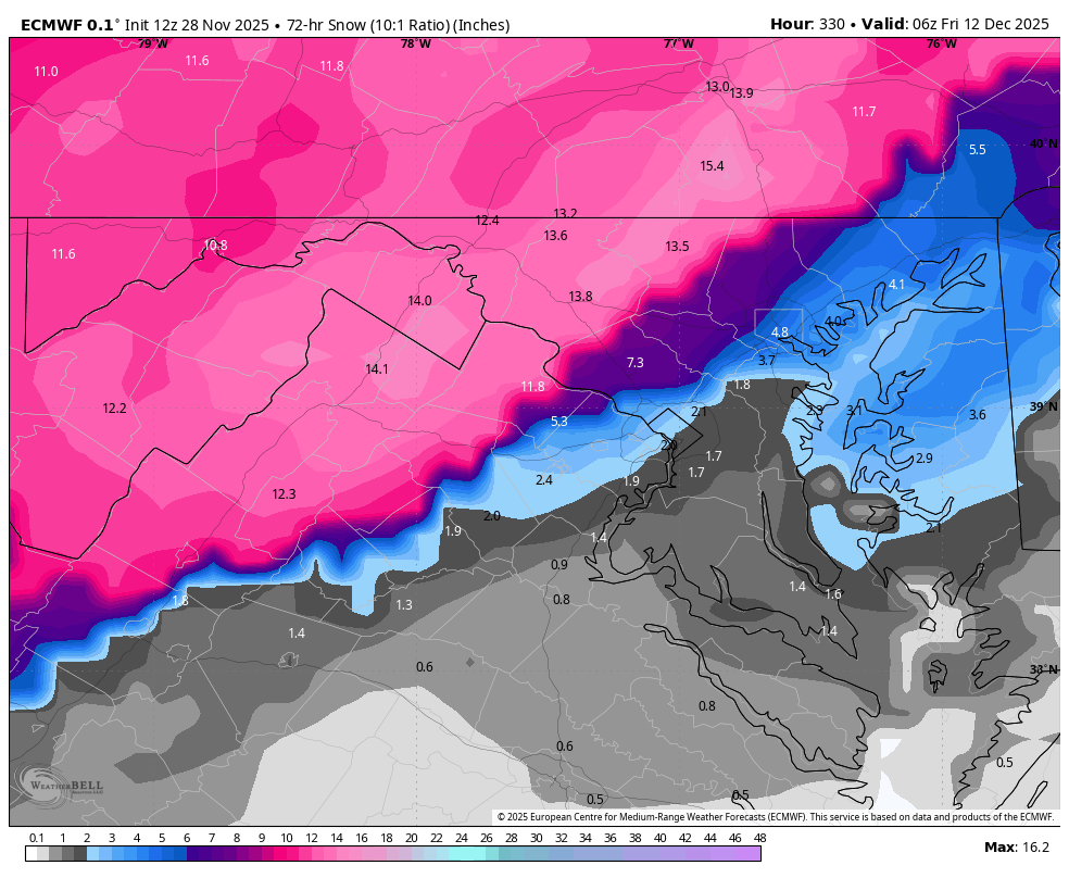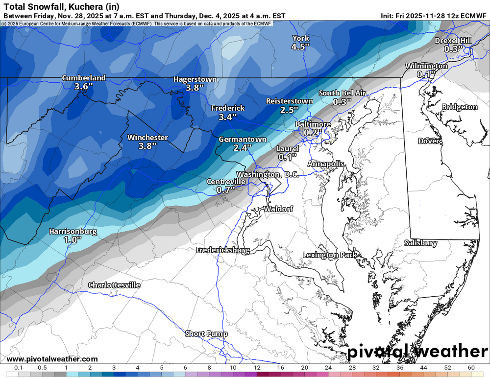 Euro op runs the rain/snow line near route 202 5" the I78 corridor -