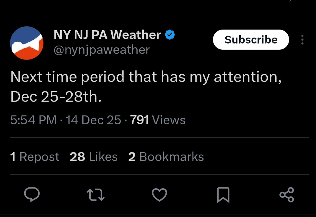 Lol, you can’t make this stuff up. Dauphin county was Advised at 3:35 am. I’m sure that really helped to alert the public in the Capital region… Winter Weather Advisory URGENT - WINTER WEATHER MESSAGE National Weather Service State College PA 335 AM EST Sun Dec 14 2025 PAZ057-141300- /O.EXA.KCTP.WW.Y.0025.000000T0000Z-251214T1300Z/ Dauphin- Including the cities of Harrisburg and Hershey 335 AM EST Sun Dec 14 2025 ...WINTER WEATHER ADVISORY IN EFFECT UNTIL 8 AM EST THIS MORNING... * WHAT...Snow. Total snow accumulations 2 to 4 inches. * WHERE...Dauphin County. * WHEN...Until 8 AM EST this morning. -