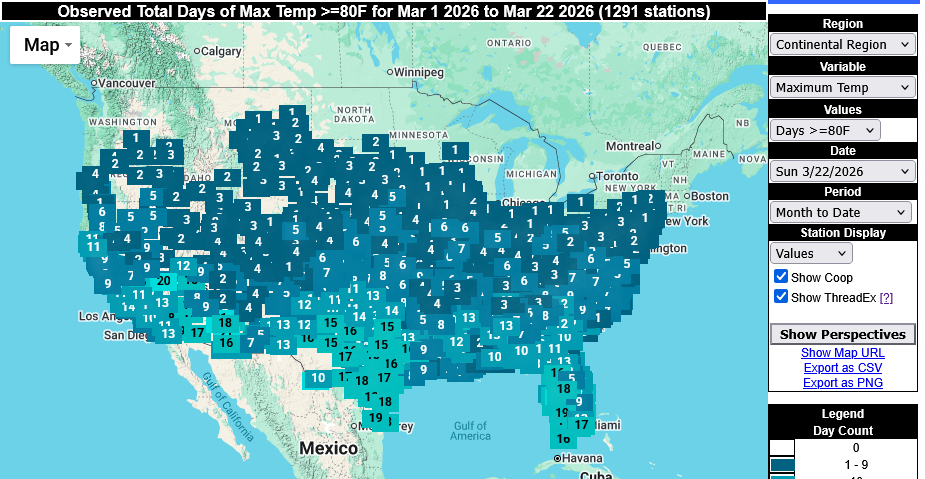 Something like this is happening ( or may be ) all over the planet. I'm wondering if/when the 2023 air-sea temperature burst might redux. This probably has to be verified by more than one source ( Climate Reanalyzer ) yet, but according to below it's at historic high relative to date, already. That curve it just crossed is 2024, 2023 just beneath. -