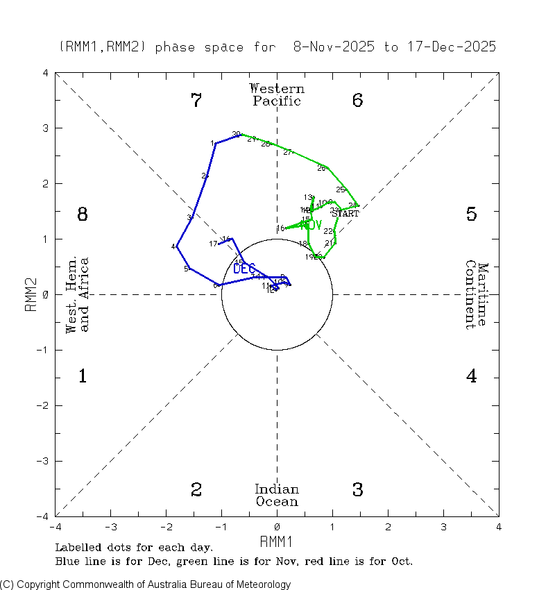 The GEFS and EPS have big disagreement 12/25-1/3! Meanwhile, phase 8 , which helped bring strong cold Dec 3-7 and Dec 15 but won’t next week, returned on 12/17 and will likely be with us for awhile: