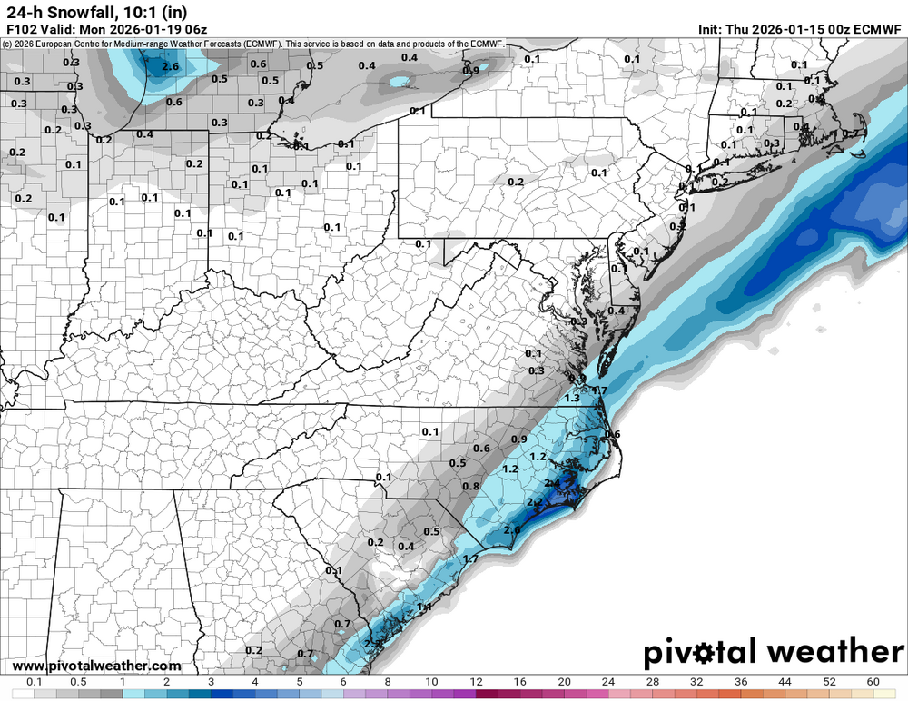 Eerily similar to late January 2015 when the predecessor event dropped 1-3 inches of wet glop that Friday night into Saturday morning, and then the big dog came back west on the 0z Euro that night/early morning. Of course nothing is ever identical, and not saying 2015 is walking in, but has a similar feeling, and similar look. With an extended look that looks promising as well. Just some observations that are similar to close to the same timeframe from 11 years ago. If anything perhaps just a week earlier this go around, compared to the start of 2015. -